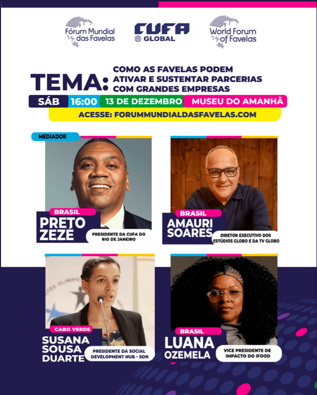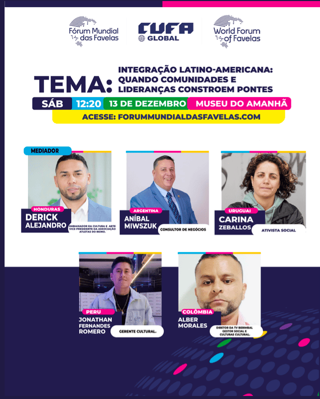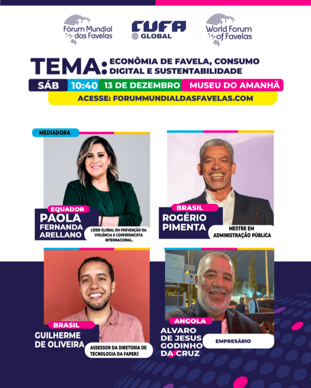 O Fórum Mundial das Favelas coloca a favela no centro do debate global. Com vozes que rompem barreiras e soluções inovadoras, líderes comunitários de mais de 100 países se reúnem para transformar realidades e moldar o futuro. Este é o espaço onde as favelas mostram ao mundo sua força e protagonismo.